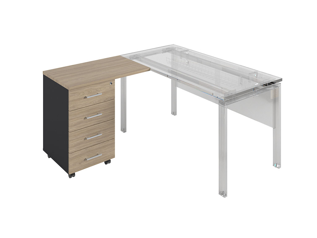 • тумба снабжена центральным замком и оснащена пластмассовым лотком для канцелярских принадлежностей в верхнем ящике